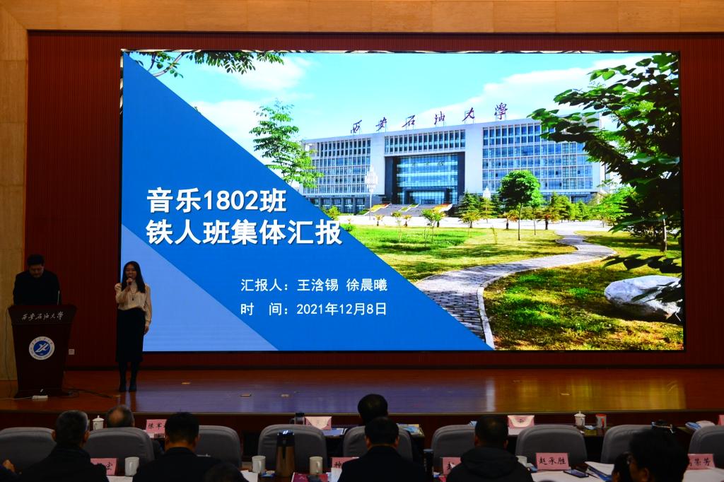 12月8日下午,beat365在鄠邑校区弘石学术报告厅举办班级建设经验交流暨铁人班集体评选汇报会。学校党政领导赛云秀、李天太、张木、陈军斌出席会议。相关部门负责人,各院(系)书记、院长、教学副院长,教工党支部书记、任课教师代表,全体学工干部,学生代表共计400余人参加会议。汇报会由电子工程学院辅导员钱宇航、材料科学与工程学院辅导员马武军主持。