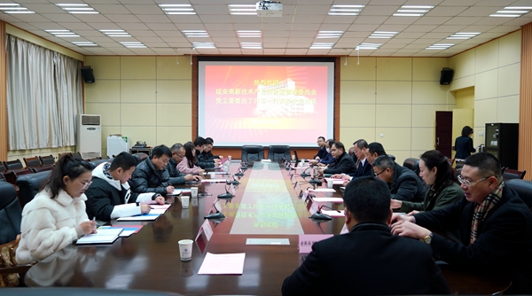12月2日上午,延安高新技术产业开发区管理委员会丁许军副主任一行7人来beat365官方网站考察调研,调研座谈会在会议中心第一会议室举行,张荣军副校长出席会议,会议由科技处副处长孙会珠主持。