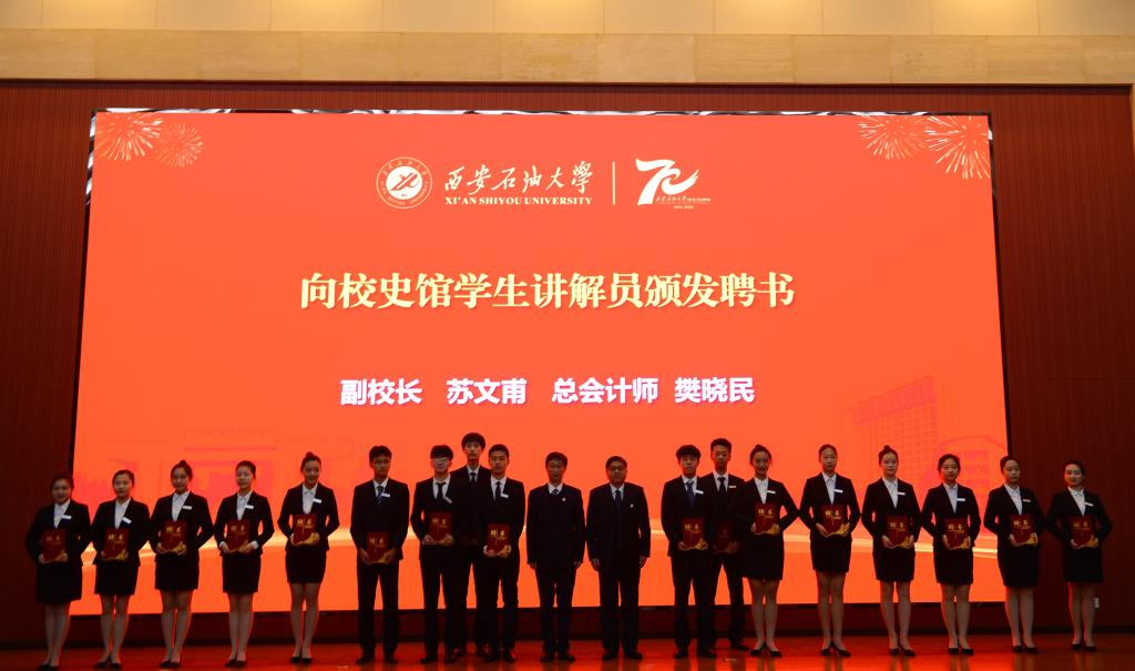 副校长苏文甫、总会计师樊晓民为17名校史馆学生讲解员颁发聘书。