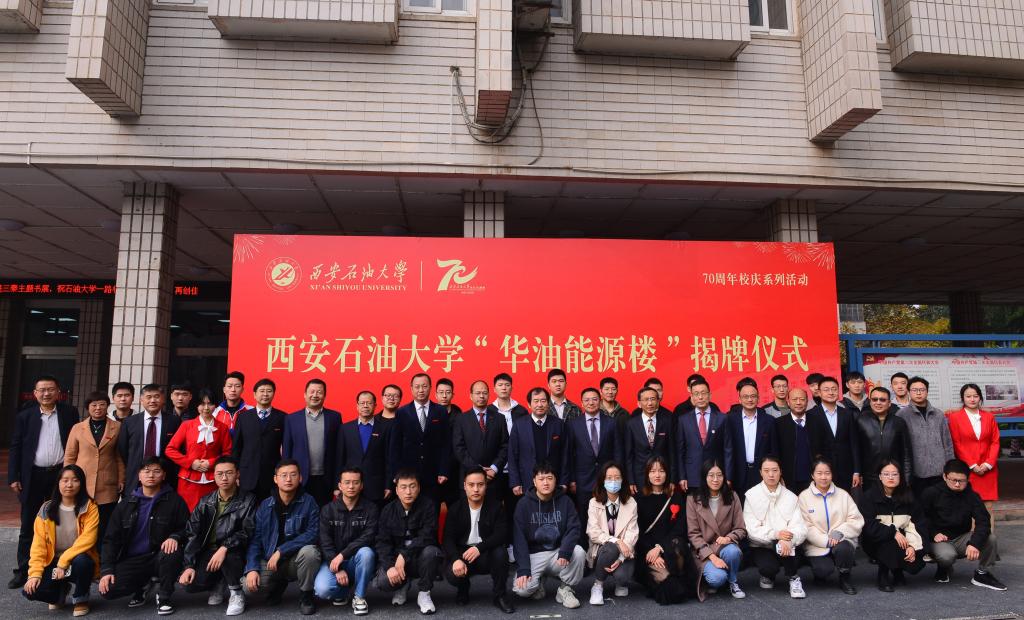 七十年风雨兼程,七十年春华秋实。为庆祝学校70华诞、深化校企合作,11月5日上午,beat365“华油能源楼”揭牌仪式在雁塔校区第一教学楼前隆重举行。华油能源集团有限公司执行董事兼行政总裁吴东方、总裁助理文举,beat365党政领导李天太、张木、雷西合、张荣军出席揭牌仪式。学校相关职能部门及院系负责人、学生代表参加揭牌仪式。揭牌仪式由校党委副书记雷西合主持。