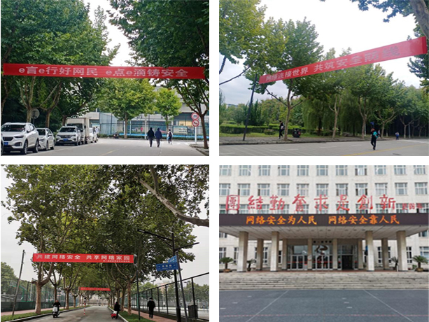 安全周期间,学校在雁塔校区和鄠邑校区主干道悬挂了网络安全宣传周宣传条幅,在LED大屏上轮播宣传标语,并在门户网站添加了网络安全宣传周宣传大图,加强网络安全宣传力度,营造网络安全宣传教育氛围。