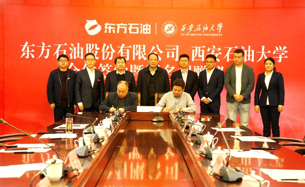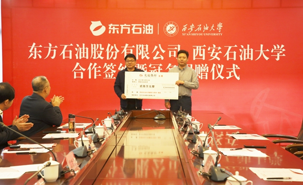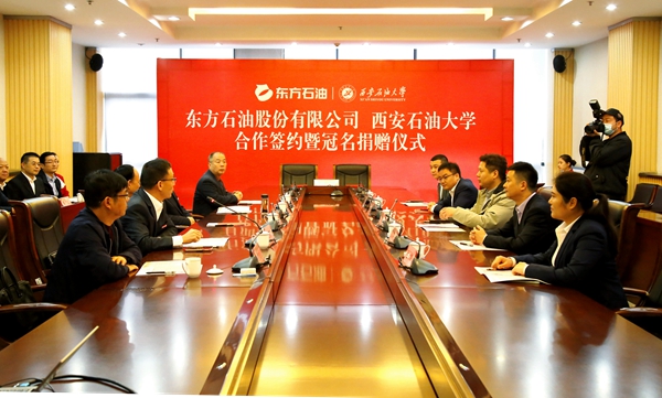 10月12日上午,beat365与东方石油股份有限公司合作签约暨冠名捐赠仪式在鄠邑校区图书馆第二会议室举行。东方石油股份有限公司董事长兼总经理刘浩、副总经理姜涛、吴伟,财务总监毛维维、副总经理潘英,beat365党委书记赛云秀、校长李天太、副校长陈军斌、总会计师樊晓民出席会议,会议由校党委副书记雷西合主持。