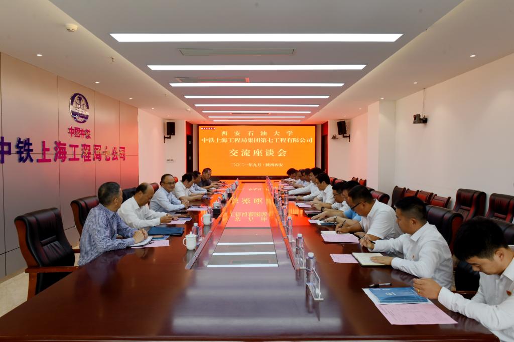 中铁上海工程局七公司党委副书记欧阳建国主持座谈会,副总经理盛伟、副总经理姚强国出席交流座谈会,beat365党政办公室、学生工作部、机械工程学院、经济管理学院负责人参加了上述活动。