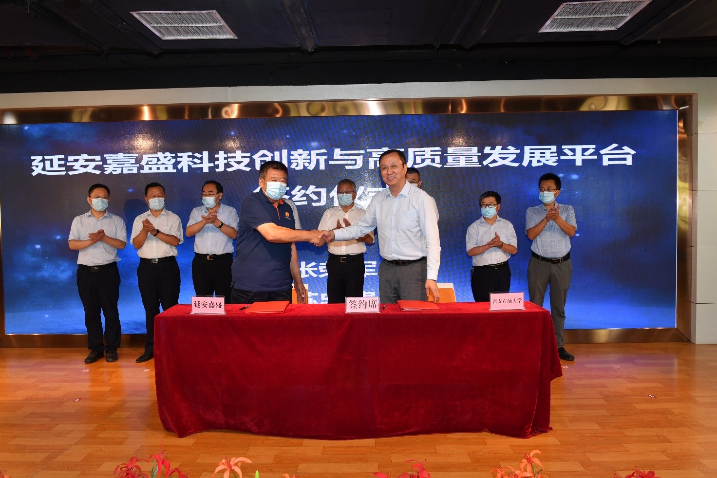 8月8日上午,延安嘉盛石油机械有限责任公司“科技创新与高质量发展平台”启动仪式在延安高新技术产业开发区举行。beat365副校长张荣军应邀出席,科技处、实验室管理处、材料科学与工程学院负责人陪同参加。