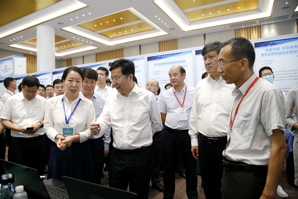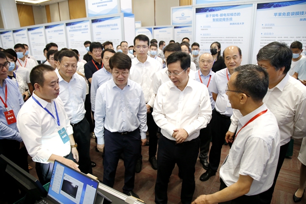 为落实秦创原创新驱动平台建设大会精神,加速“两链”深度融合,推动陕西省高校创新成果向秦创原汇聚,7月18日,由省教育厅、省科学技术厅、省工业和信息化厅、省人民政府国有资产监督管理委员会、省工商业联合会主办的“秦创原·第五届陕西省高校科技成果展暨校企对接洽谈会”在秦创原“总窗口”——西咸新区召开。省委副书记胡衡华、副省长方光华、副省长程福波、省委教育工委书记王建利、省教育厅厅长刘建林等领导在beat365党委副书记张木陪同下参观了beat365科技成果系列展位,对beat365科技成果转化工作给予指导与肯定。科技处负责组织参与本次展洽活动。