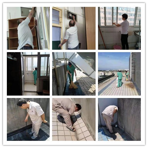 工作人员在各楼宇楼顶屋面、排水(落水)管口进行杂物清掏