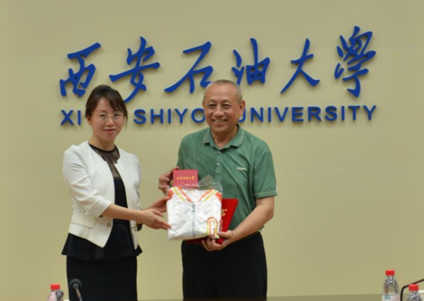 随后,国际教育学院(丝路能源学院)院长董皓老师为李铠先生赠送了创新创业纪念品。
