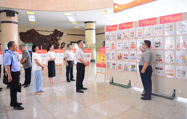 7月6日上午,校党委副书记雷西合来到鄠邑校区图书馆二楼大厅,参观了“献礼建党百年 红色门票+红色经典主题展”。