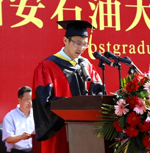 研究生导师代表、陕西省青年科技新星、校拔尖人才、化学化工学院陈刚教授勉励研究生保持创新的思维和开放的精神,在今后的工作中从知识学习转向问题研究,从学生气质转向学者品质,从理论受教转向实践创新,通过奋斗成就精彩人生。