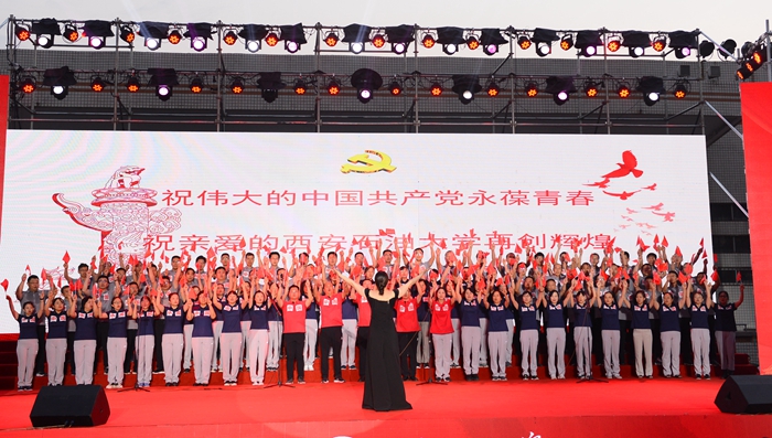 百年历程璀璨如画,光辉岁月悠久如歌。为隆重庆祝中国共产党成立100周年,深入推进党史学习教育,6月26日晚,学校在雁塔校区体育场举办了“唱响主旋律,奋进新时代”庆祝建党100周年教职工合唱比赛。校党委书记赛云秀、校长李天太等全体校领导出席比赛。全校各二级单位组成了19支代表队参加比赛。