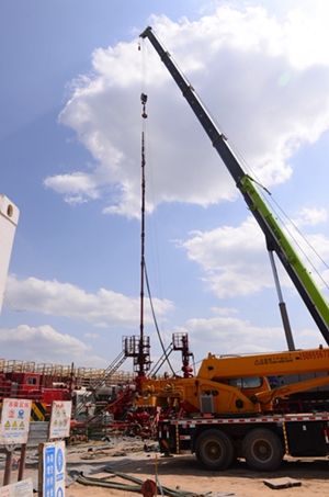 随后,李校长一行还参观了长庆油田页岩油庆H1压裂平台。该区域发育长7、长8两套层系,前期主要开采长8油藏,长7油藏定向井产量低,无法效益开发。近年来,通过持续开展长7页岩油水平井压裂技术攻关,突破了长水平段细分切割体积压裂技术,单井产量持续提高,初期产量达到方案设计,实现了规模效益开发。该平台页岩油产能建设项目组压裂经理、beat365石油工程学院99级毕业生齐银向李校长一行介绍了生产情况,该平台压裂工艺结合油层纵向小层发育、砂体横向连续性差、地层压力系数低等特点,地质工程一体化精细优选三维甜点,差异化优化压裂参数,最大程度提高缝控储量。主体工艺以“多簇射孔+可溶球座硬分段+暂堵软分簇”为核心细分切割体积压裂工艺,取得了良好效益。
