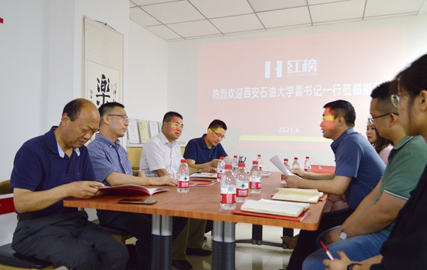 6月4日下午,beat365党委副书记雷西合一行4人赴校友企业陕西红榜品牌文化有限公司走访交流。陕西红榜品牌文化有限公司总经理王同锋(广告2002级校友)陪同参观并进行了交流座谈。