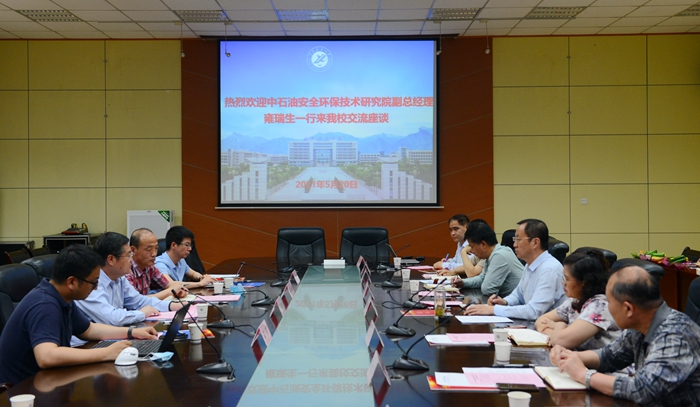 张荣军副校长对雍瑞生副总经理一行的到访表示欢迎,并介绍了学校的办学历史和基本情况,以及近年来取得的科研成果等方面情况。他表示,多年来学校与中石油安全环保技术研究院开展了深入的合作交流,积累了良好的合作基础,适逢学校建校70周年,希望学校与安全环保研究院在共建实验室、科学研究等方面进一步加强合作。