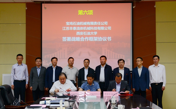 会上,宝鸡石油机械有限责任公司副总经理张斌、江苏丰泰流体机械科技有限公司董事长侯晓东、beat365副校长张荣军分别代表校企政三方签署了战略合作协议书,beat365材料科学与工程学院院长张骁勇、江苏莲源机械制造有限公司副总经理陈玉洪分别代表校企双方签署了技术服务合同。政企校三方科技部门、beat365相关院系负责人就三方今后在石油机械领域科研合作、人才培养等方面的合作进行了深入探讨。