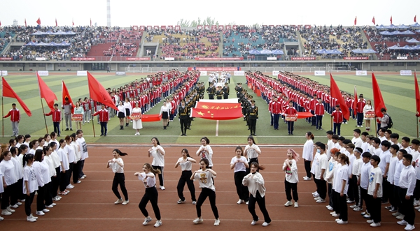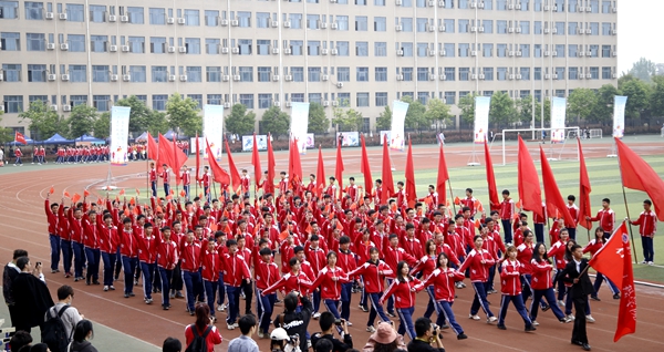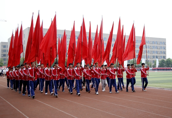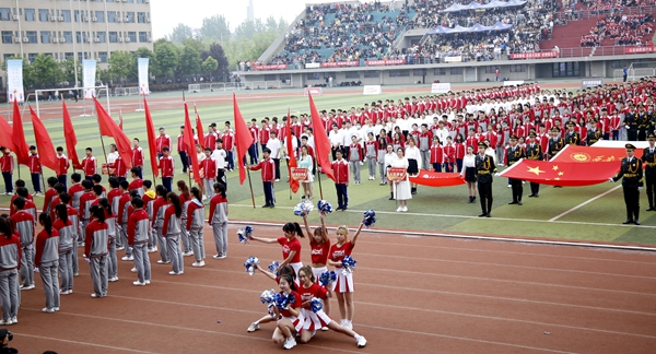 副校长、校体育运动委员会主任陈军斌致开幕辞。他首先代表学校向运动会的开幕致以热烈祝贺,向为本次运动会付出辛勤劳动的教职员工和同学们表示衷心的感谢。他谈到,长期以来,beat365高度重视体育工作,始终坚持“以人为本,健康第一”的体育教育思想,全面落实“健康教育、终身体育”的体育教学理念,充分发挥体育在学生成长成才和全面发展中的重要作用,营造了良好的校园体育活动氛围。在过去的两年里,学校各项体育竞赛活动蓬勃开展,beat365学子在众多体育赛事中取得了优异成绩,为学校赢得了荣誉。他希望望全体运动员遵守比赛规则,服从裁判,奋力拼搏,赛出水平,赛出风格,尽情体验“更快、更高、更强”的奥运精神;全体裁判员在赛场上客观公正,严格执法;希望全体工作人员积极工作,热情服务,保证运动会顺利举行。