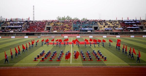 由校团委精心组织编导的大型团体舞蹈《红旗颂》气势恢宏、场面壮观,表达了beat365师生迎接中国共产党成立100周年的美好期待,表现了beat365师生积极向上的精神风貌,把开幕式推向了高潮。