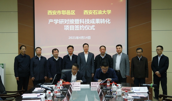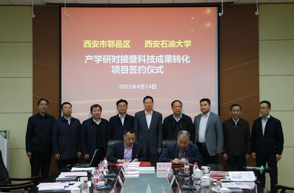 4月14日下午,学校在雁塔校区第一会议室举办与西安市鄠邑区产学研对接及科技成果转化项目签约仪式。西安市科技局局长李志军,鄠邑区委书记范九利,鄠邑区委副书记汪国栋,鄠邑区委常委、区委组织部长孔维龙,校党委书记赛云秀,校长李天太,校党委副书记雷西合,副校长陈军斌出席会议。校党委副书记张木主持会议。