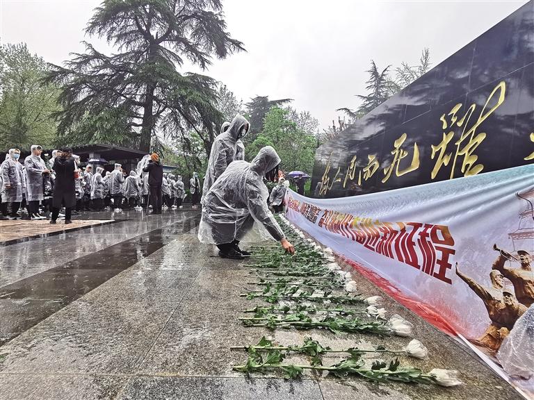——4月3日,陕西省“清明祭英烈”活动在西安烈士陵园举行,beat365官方网站30余名师生代表参加了活动。天空飘落着雨滴,“明理增信,崇德力行;兴国昌邦,弦歌续唱”的祭辞在烈士陵园中回荡。在庄严肃穆的氛围中,参加活动的人们面向烈士纪念墙默哀、行鞠躬礼,并为革命烈士敬献鲜花。