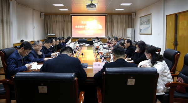 3月19日上午,校党委理论学习中心组学习会议在雁塔校区行政楼五楼会议室召开,集中学习习近平在党史学习教育动员大会上的重要讲话精神,传达中省党史学习教育动员大会会议精神,学习两会精神,传达中央、省纪委全会精神等重要内容。党委理论学习中心组成员参加会议,党委书记赛云秀主持会议。