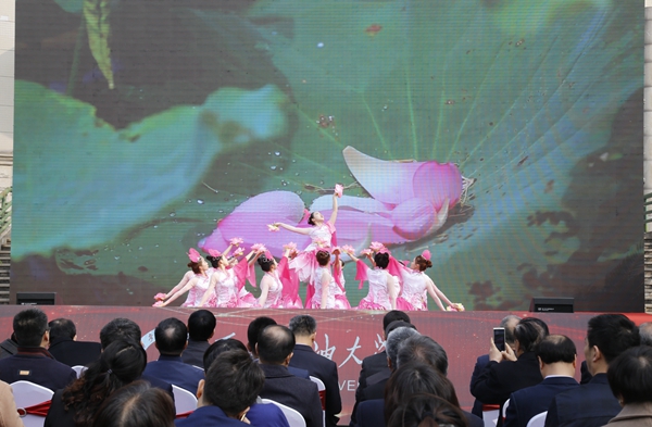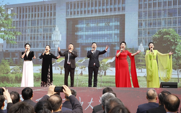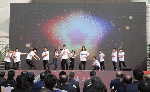 随后,师生进行了精彩的文艺表演。校团委、大学生艺术团表演了古典舞《荷风盛世》、街舞《舞动青春》;音乐系师生表演了歌曲联唱、器乐合奏《阿拉木汗》;国际教育学院的国际学生带来了《土库曼斯坦民族舞蹈》;校工会、教职工舞蹈协会表演了民族舞《山丹丹开花红艳艳》;教授教师合唱团、音乐系启航男声合唱团演唱了《回娘家》。最后,70周年校庆启动暨一号公告发布仪式在校歌《辉煌明天》中圆满结束。