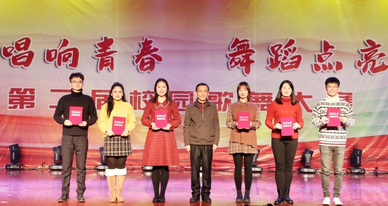 最终,经过激烈角逐,《给你一点颜色》获歌曲组一等奖,《New York New York》《黑猫警长》获歌曲组二等奖,《鸿雁》《故乡山川》《易燃易爆炸》获歌曲组三等奖,《少年锦时》《古风歌曲串烧》《错》《飞云之下》获歌曲组优秀奖;强波蓉、莱丽古丽·伊立哈木获舞蹈组一等奖,胡容榕、卡比热阿·比那尔别克获舞蹈组二等奖,孜拉来·阿不地力木、娜迪热·阿朴杜外力、邵镘毅获舞蹈组三等奖,沈安媞、王一平、王馨蔚、杨怡飞、李蔚然获舞蹈组优秀奖;古兰、邱迪、范嘉欣、张靓、沈轩羽、史阳获优秀导师奖。张木副书记为获奖师生颁奖。