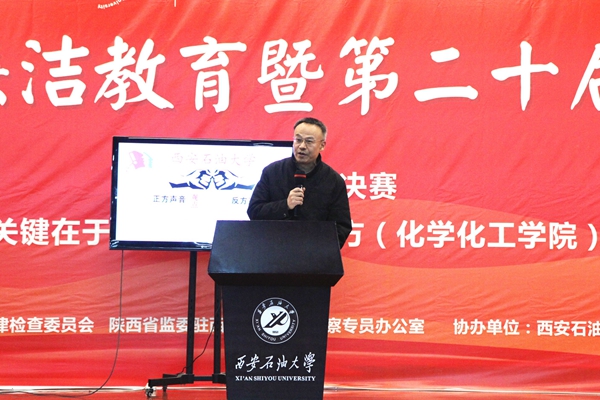 外国语学院和化学化工学院两支代表队以“惩治腐败关键在于‘打老虎’还是‘拍苍蝇’”为辩题,展开了辩论,唇枪舌剑,精彩纷呈。在场下观众提问环节,在场的同学们也积极参与了辩论。最终,外国语学院获得第二十届“智者杯”辩论赛冠军,化学化工学院获得亚军,石油工程学院和电子工程学院获得季军。马克思主义学院副院长张海涛代表评委团对冠军争夺赛作了点评。他谈到,在惩治腐败中,“打老虎”和“拍苍蝇”同等重要,辩题的设置体现了唯物史观视域下坚持“两点论”和“重点论”的辩证统一,对同学们深刻理解“不敢腐、不能腐、不想腐”的体制机制建设,牢固树立廉洁自律意识具有重要意义。