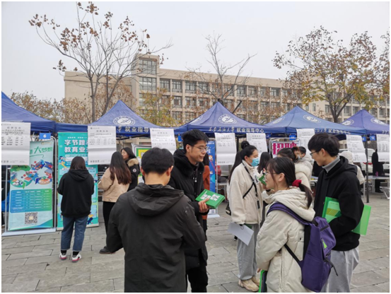 11月28日上午,beat365在鄠邑校区江汉林广场举行了2021届财管文外毕业生校园招聘会。到场单位60余家,参会代表100余人。
