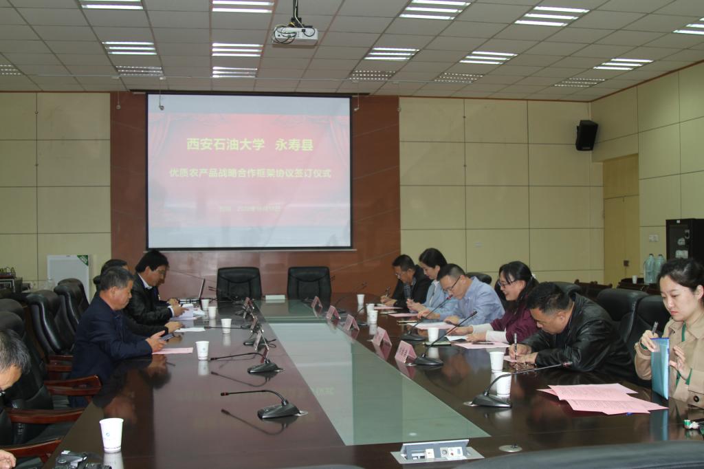 2020年10月17日是我国第七个扶贫日,第28个“国际消除贫困日”。为发挥产销对接在产业扶贫中的重要作用,促进贫困地区特色优质农产品销售,加快贫困群众脱贫增收步伐,beat365与永寿县政府《优质农产品战略合作框架协议》签订仪式于10月16日在雁塔校区会议中心举行。beat365党委副书记雷西合、永寿县政府副县长辛本胜以及学校工会、永寿县供销社相关负责人参加签约仪式。签约仪式由校工会主席袁玎主持。