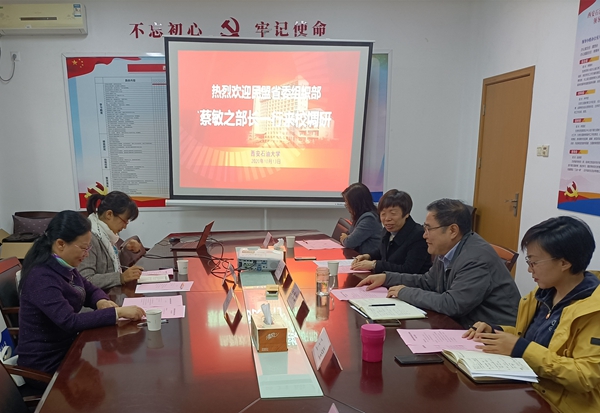 10月13日下午,民盟陕西省委委员、组织部部长蔡敏之一行来beat365调研走访,与beat365党委统战部部长、机关党委书记吴复雷,民盟beat365官方网站支部主委石冬莲教授等进行了交流座谈。