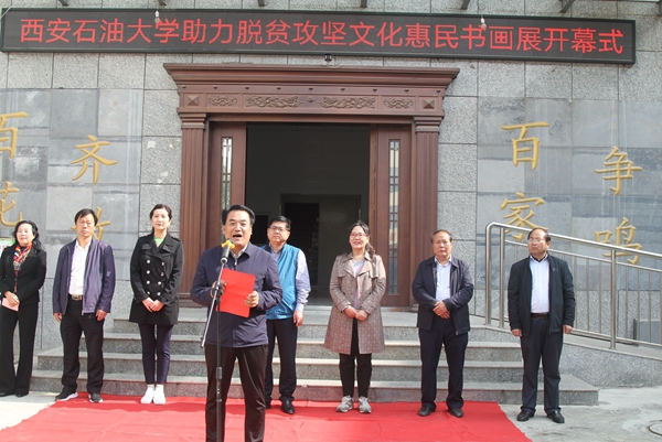 校工会主席袁玎、永寿县副县长任各分别在开幕式上致辞。袁玎主席谈到,2020年是全面建成小康社会、决战决胜脱贫攻坚的收官之年,永寿人民在脱贫攻坚的道路上奋力追赶奔小康的精神风貌令石油大学全体师生由衷敬佩,也为学校广大书画爱好者提供了创作灵感。学校书画协会的老师们为这次书画展创作了大量的优秀作品,以自己的作品表达对永寿全县人民坚决打赢脱贫攻坚战的支持与敬意!