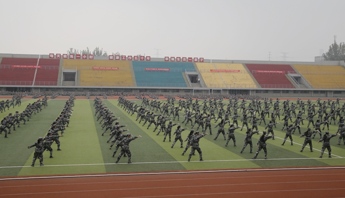伴随着激昂的进行曲和嘹亮的口号,2020级本科生分12个方阵,迈着整齐矫健的步伐,精神饱满地经过主席台,向全校师生展示队列训练成果。队列成果展示后,2020级本科新生分别进行了捕俘刀、军体拳、刺杀操、手语操等科目的表演。