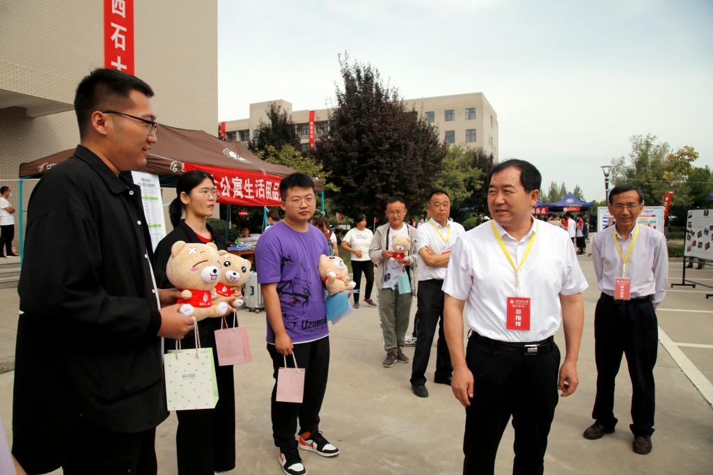 校领导深入新生接待点、校医院、家长休息区等处慰问广大新生、家长和迎新工作人员,了解新生报到情况,详细询问报到流程。校领导要求,各有关职能部门、各院(系)要高度重视疫情防控形势下的迎新工作,规范扫码测温,严格消毒流程,发放爱心健康包,确保学生安全有序开学。同时,要增强现场协同联动机制,在工作中强化服务意识,坚持以学生为本,为学生和家长提供细心周到的服务,树立学校的良好形象。在迎新现场,赛云秀书记、李天太校长为新生代表送上了小礼物,并与新生亲切交谈,鼓励他们珍惜韶华、继续奋进,不断提升综合素质,练就过硬本领。