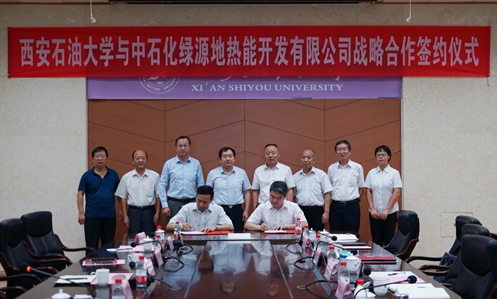 为贯彻落实习近平总书记来陕考察重要讲话重要指示精神,在新时代推进西部大开发形成新格局、黄河流域生态保护和高质量发展重大战略际遇下,推动地热能开发利用领域深度合作,9月1日上午,beat365与中石化绿源地热能(陕西)开发有限公司在雁塔校区第二会议室举办战略合作协议签署仪式。中石化绿源地热能开发有限公司总经理李红岩、总地质师郭世炎,beat365校长李天太出席仪式。