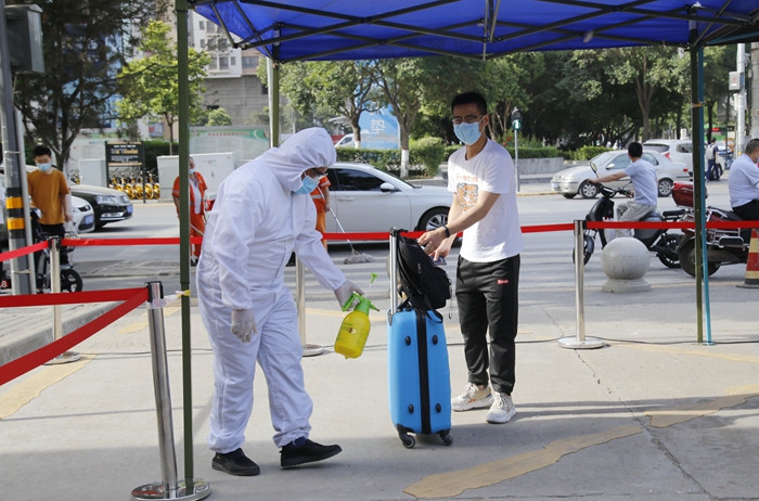 返校前学生每日通过“易班小程序健康信息上报系统”填报个人健康状况及行程轨迹。返校当天,所有同学在现场工作人员的指引下,依次有序完成了更换口罩、测量体温、行李和手部消毒、核查健康码(绿码)、身份核实等流程。