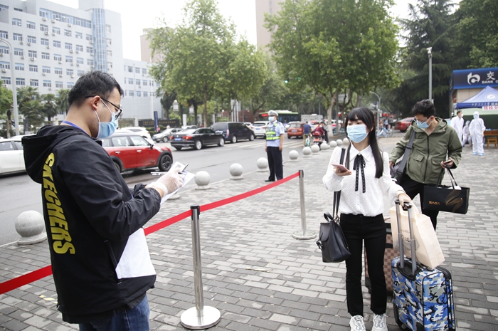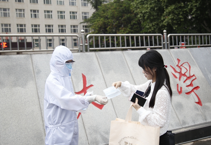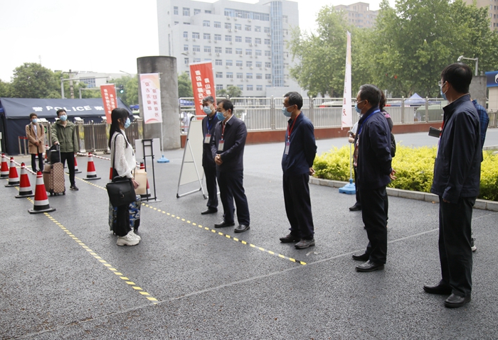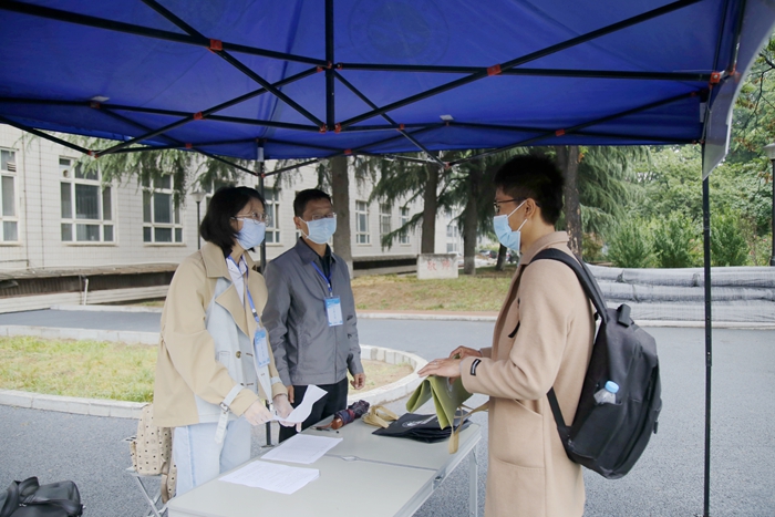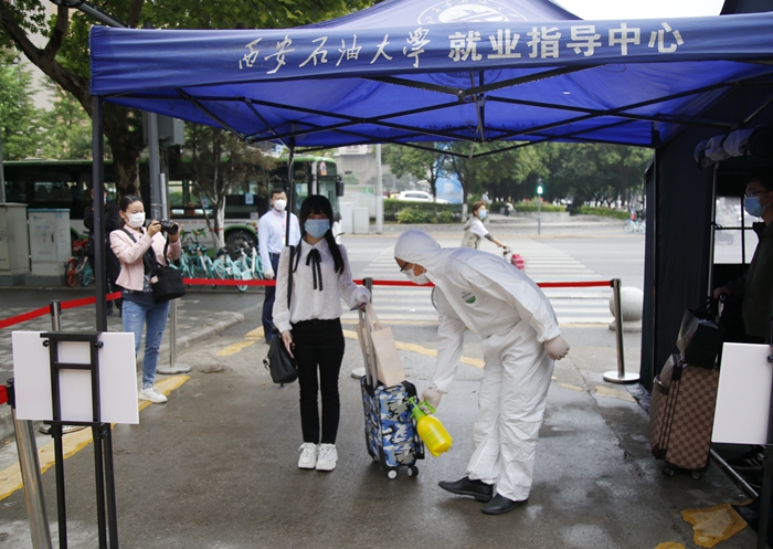5月7日上午9时,首位返校学生、经济管理学院研究生刘雪梦顺利抵达学校。在现场工作人员的指引下,刘雪梦依次完成了更换口罩、测量体温、行李和手部消毒、核查健康码(绿码)、身份核实等流程后顺利进入校园。校党政领导赛云秀、李天太、张木、李华、苏文甫、程永清先后到报到区迎接返校同学,校领导与同学们亲切交谈,对返校同学表示欢迎,深入了解大家的思想状况、身体状况、假期学习生活、论文撰写情况、就业情况。校领导鼓励同学们坚定战胜疫情的信心,严格落实学校、学院各项疫情防控措施,同时要珍惜最后的校园时光,顺利完成学业任务。