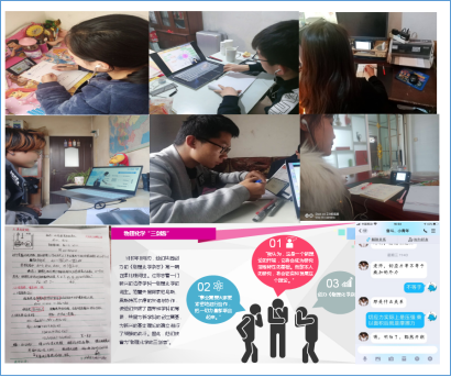 视频、音频、在线讨论、线上答题等多种方式,积极开展教学互动,力争网络课堂务实高效;网络课堂下,学生们及时完成作业,拍照上传QQ群或微信群,任课教师点评、记录、答疑解惑,及时巩固学习成果,实现“停课不停学,离校不离师”。