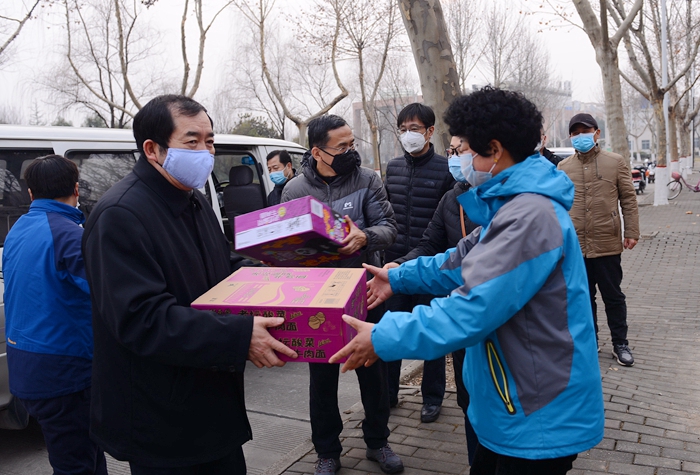 2月1日下午,学校疫情防控工作领导小组组长、校长李天太,领导小组副组长、校党委副书记张木,领导小组副组长、副校长苏文甫在党委组织部、纪委监察处、保卫处、后勤管理处等部门负责人陪同下,看望慰问了疫情防控一线的工作人员。
