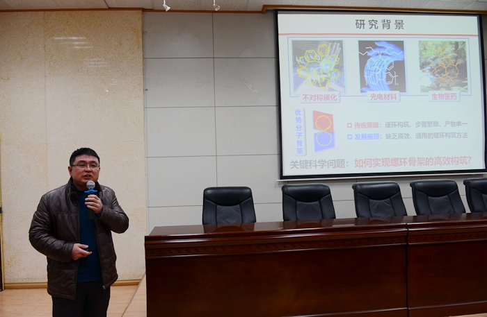 成立仪式结束后,与会专家就《抽油机减速器半流体润滑剂产品标准》进行了审定。同时会议还邀请西北大学化学与材料学院院长、国家杰出青年基金获得者栾新军教授作了题为“螺环构筑的新策略与新方法”的报告,beat365师生代表120余人现场聆听。