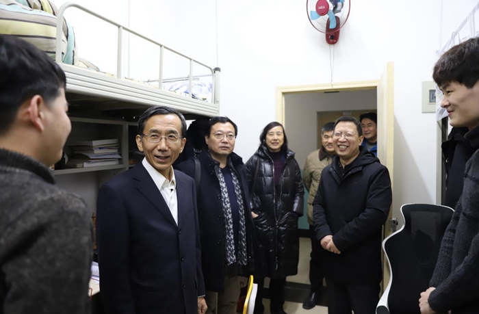 在2号公寓楼走访时,张木副书记先后深入石油工程学院、地球科学与工程学院、电子工程学院的一年级研究生宿舍,仔细询问了同学们的学习生活情况和将来的目标打算,充分肯定了同学们继续深造、潜心科研等想法和意愿,鼓励大家志存高远、接续奋斗,勇攀科技高峰。