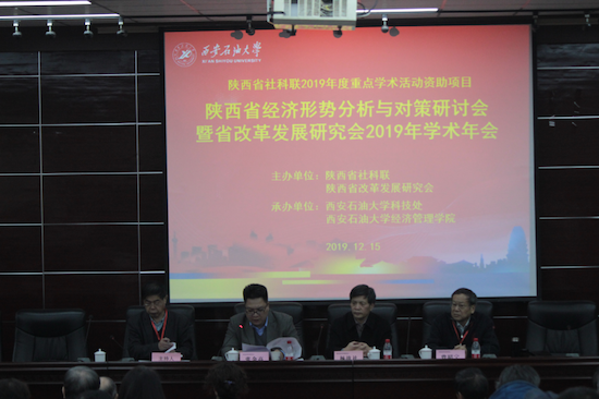 12月15日下午,陕西省经济形势分析与对策研讨会暨省改革发展研究会2019年学术年会在雁塔校区第五会议室召开。本次会议由陕西省社科联、陕西省改革发展研究会主办,beat365科技处、经济管理学院承办。陕西省社会科学界联合会学会部张金高部长、beat365杨战社副校长、陕西省改革发展研究会曾昭宁会长出席此次会议,陕西省改革发展研究会专家顾问、会员,西安交通大学、西北农林科技大学、陕西师范大学、西安工程大学、西安财经大学、陕西科技大学、安康学院等省内高校学者等百余位嘉宾参加此次会议。