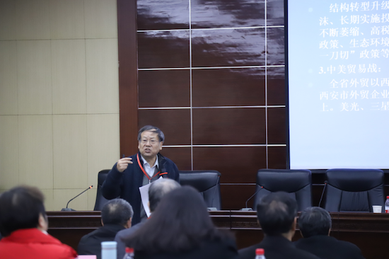 西安交通大学经济与金融学院教授、博导、“一带一路”自由贸易试验区研究院服务贸易中心主任冯宗宪,做题为《当前面临的对外开放形势分析》的学术报告。冯宗宪教授通过详尽的宏观数据分析,为大家展示了我国“十三五”期间经济增速由降转升、又由升转降的复杂变化情况,指出中美贸易摩擦对我国出口造成了显著影响,最新贸易谈判协议的初步达成,有望降低此种影响,带来陕西对外出口的新转机,建议陕西用好“一带一路”的政策红利,保持经济稳定增长。