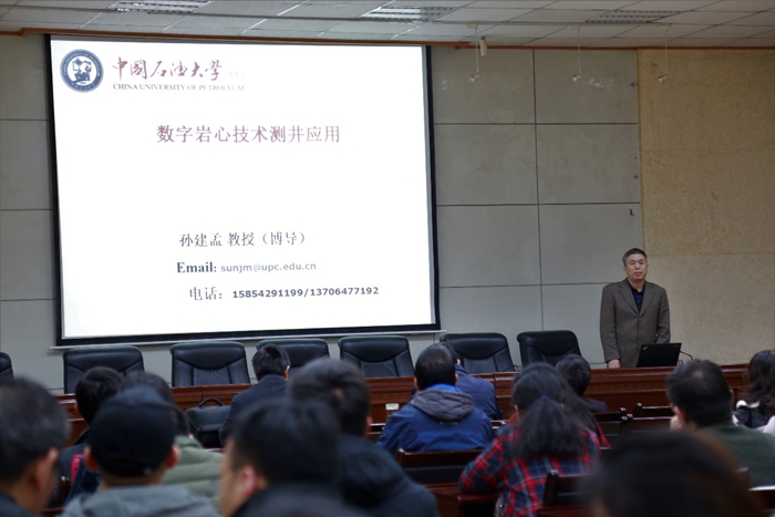 聘任仪式结束后,中国石油大学(华东)孙建孟教授以“数字岩心技术在测井中的应用”为题,在第三会议室为beat365师生作了学术报告。孙建孟教授从数字岩心建模、岩石物理属性模拟等方面对数字岩心技术进行了介绍,指出数字岩心技术与常规岩石物理实验相比存在的优势,是研究微观因素对岩石物理属性影响的重要手段,同时展望了数字岩心技术在地质、地震、岩土工程等学科中的应用前景。