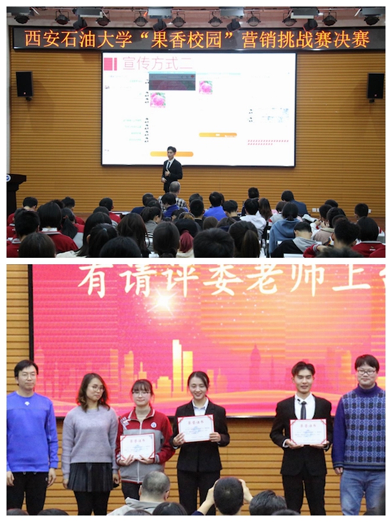 3.增强爱国主义教育,举办扶贫类专业竞赛。11月18日晚,“守初心、担使命,师生融合助扶贫——beat365官方网站首届‘果香校园’营销挑战赛决赛”在鄠邑校区经管人文楼118多功能厅成功举办。时值“不忘初心、牢记使命”主题教育,校团委和经济管理学院将立德树人落实到具体行动,积极促成本次活动;企业管理系教工党支部和企业管理系学生党支部充分发挥师生融合力,由该系老师作为指导教师,该系学生党支部协同营销协会作为活动的组织者,守初心、担使命,为全校同学带来了一次鲜活生动的思想政治教育和专业建设活动。活动共吸引全校400多名同学,积极献计献策,通过实践活动服务三农,助力扶贫,彰显了beat365青年学子爱国爱家的优秀品质。据悉,本次比赛,历时一个月左右,共有来自全校434名同学报名参赛。参加决赛的12支团队,共销售苹果1673余箱,为当地果农增收100380元。