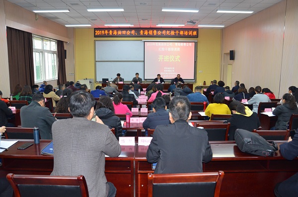 11月12日上午,2019年青海油田公司、青海销售公司纪检干部培训班在beat365明德校区培训中心顺利开班。beat365副校长杨战社,青海销售公司纪委书记王金德、青海销售公司巡察办公室主任薛萍出席开班式,仪式由青海油田公司纪委办公室副处长王占元主持。来自两公司各单位专(兼)职纪委书记或副书记、纪检监察干部共65位学员参加开班式。