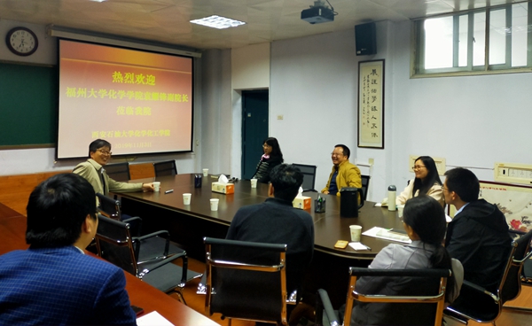 11月3日下午,福州大学化学学院副院长袁耀锋来beat365访问交流。座谈会在化学化工学院会议室召开。李华副校长,化学化工学院负责人及师生代表参加了座谈会。