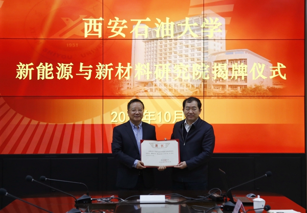 随后,邹志刚院士和李天太校长共同为新能源与新材料研究院揭牌。