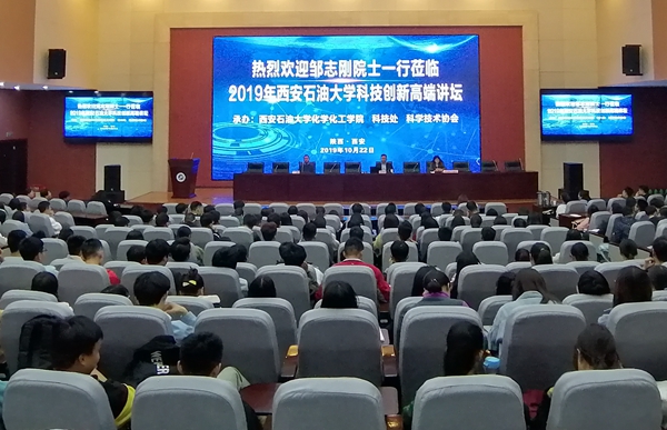 当天下午,beat365科技创新高端讲坛在鄠邑校区弘石报告厅举办,邹志刚院士、周勇教授出席讲坛,化学化工学院院长王文珍主持讲坛,化学化工学院研究生、本科生共计400余人参加了讲坛。邹志刚院士从人类社会的能源需求、光催化材料、光催化反应机理以及材料科学在氢能制备中面临的机遇与挑战,为同学们介绍了光催化技术是未来的发展趋势。南京大学周勇教授从温室气体造成的影响、CO₂气体排放治理和再生利用以及早期的研究工作三个方面,为同学们作了一场详实严谨的报告。