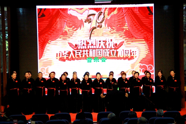 音乐会在离退休教职工合唱团表达对祖国深情的《我和我的祖国》中拉开了帷幕。男生小合唱《歌唱祖国》表达了离退休教职工对祖国的喜爱以及对祖国美好未来的祝愿。老年合唱团的大合唱《幸福中国一起走》、《今天是你的生日》曲调优美,朗朗上口,音乐旋律欢快喜庆,又包涵老同志对祖国的宽广深情。葫芦丝合奏《十送红军》演奏出了根据地人民对红军的情真意切、难舍难分以及对革命成功的强烈期盼。女生独唱《唱支山歌给党听》真诚、质朴,充满着深厚情感。校工会教职工合唱团的合唱《卓玛》以激情、动人的旋律,娓娓道来,传达出了一种对“心中卓玛”深深的思念和向往。《我爱你,中国》传达了教职工对祖国、对民族的爱。小合唱《我爱祖国的蓝天》唱出了男子汉的豪气、英武与博大胸怀。张梅娟教授的小提琴独奏曲《新疆之春》演奏潇洒自如,令听者仿佛置身于天山碧野,葡萄架下,感受天山的明媚动人,享受绿色草原的广袤无边。女生小合唱《一个妈妈的女儿》表达了藏汉人民之间的团结之情和西藏各族群众对伟大祖国的深切热爱。崔巍老师的电吹管独奏《绣红旗》表达了中华儿女热爱党热爱祖国的一片红心。音乐会在充满了浪漫情怀的大合唱《我们的生活充满阳光》中落下了帷幕。