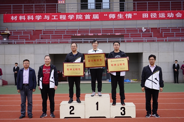 经过一整天的激烈角逐,新材料系、实验教学中心与办公室联队、焊接技术与工程系分获教工团体总分前三名并分别荣获“最佳组织奖”和“精神文明奖”,材料类1902、材料类1901、研究生学硕班分获学生团体总分前三名并荣获“优秀组织奖”。