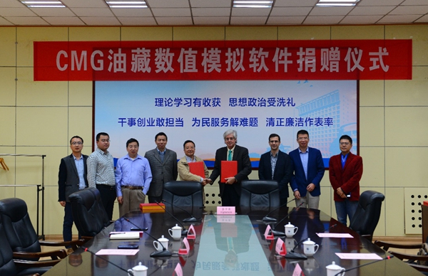 10月17日下午,加拿大计算机模拟软件集团(CMG)向beat365捐赠油藏数值模拟软件仪式在雁塔校区第一会议室举行。beat365副校长李华、CMG美国及拉美业务副总裁Jim·Erdle、beat365石油工程学院负责人、CMG中国区代表参加仪式。